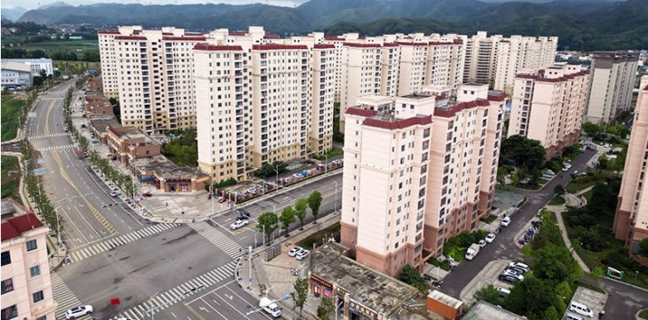 云南昭通靖安安置区,全国最大的跨县安置区,共有9256户40549人迁入,其中建档立卡6976户31160人。