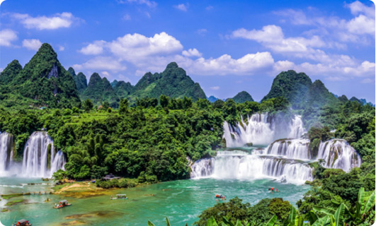 获选理由:国家5A景区、国家级风景名胜区,是亚洲第一、世界第四大跨国瀑布,被中国国家地理杂志评选为中国最美的六大瀑布之一。生态环境优异,横跨中国、越南两个国家,以跨国瀑布山水景观、丰富多彩的边境民俗风情、悠久神奇的边关历史文化为特色,形成山青、水秀、瀑美、情浓为一体的南国边疆特色景观,是海内外知名的影视题材外景拍摄基地,被评为国家生态旅游示范区、中国国际特色旅游目的地。