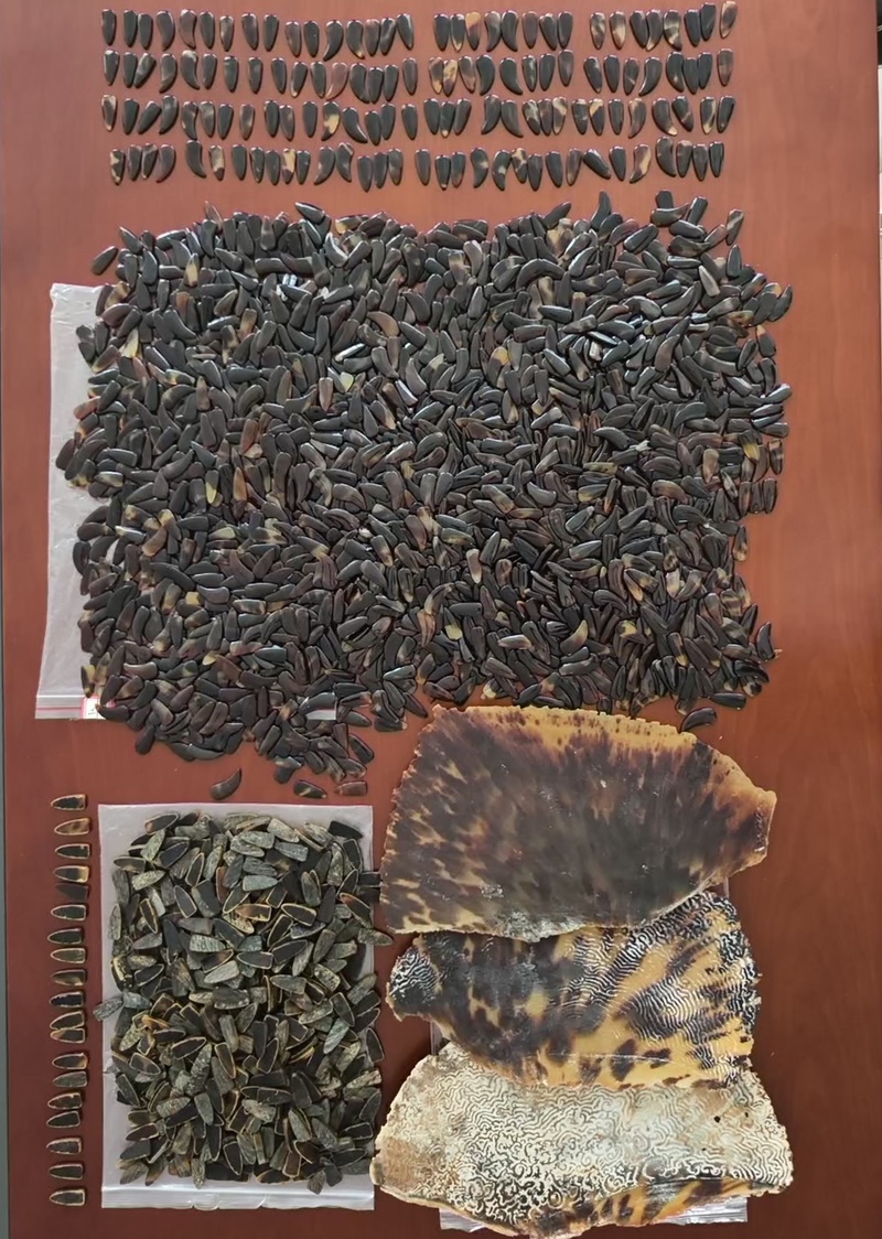 公安机关查获的玳瑁甲片、玳瑁古筝义甲成品和半成品