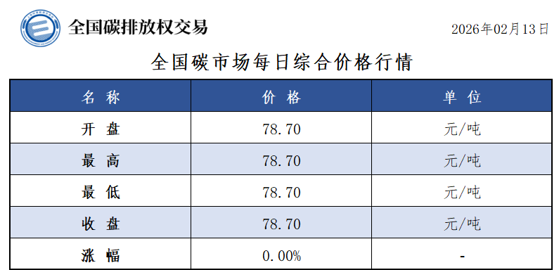 【CEA】全国碳市场每日综合价格行情及成交信息20260213