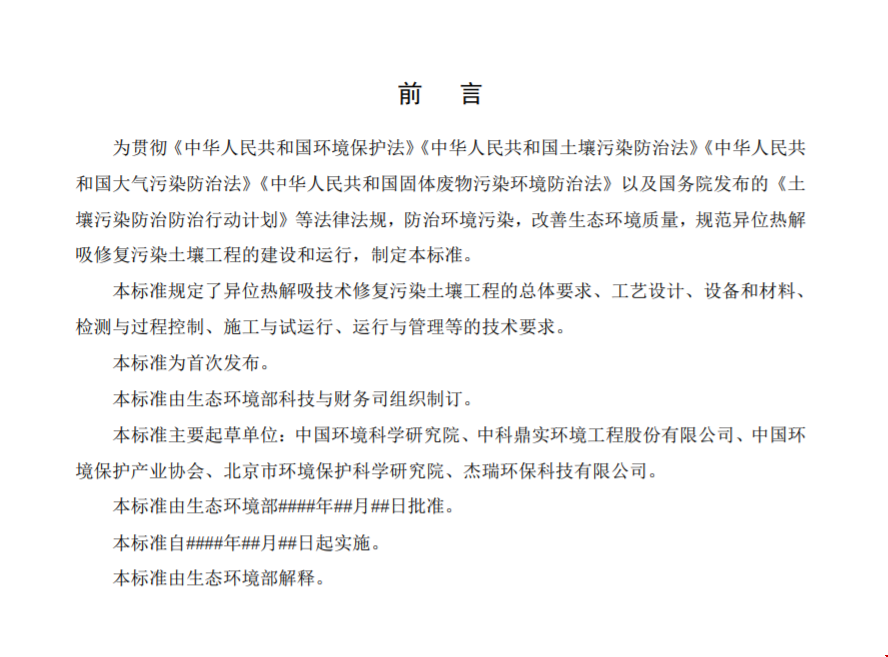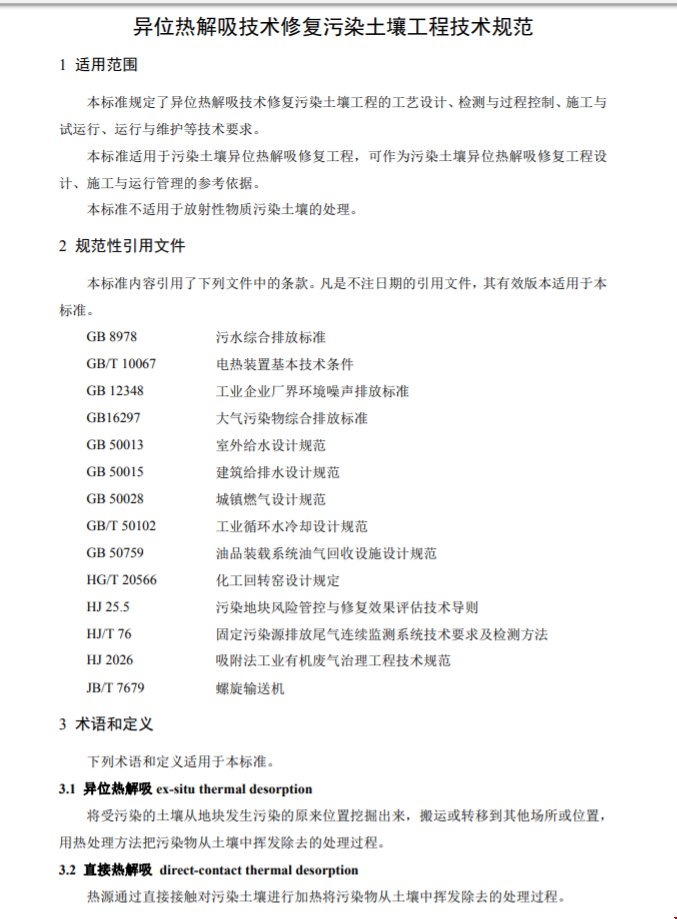 2.《异位热解吸技术修复污染土壤工程技术规范(征求意见稿)》编制说明