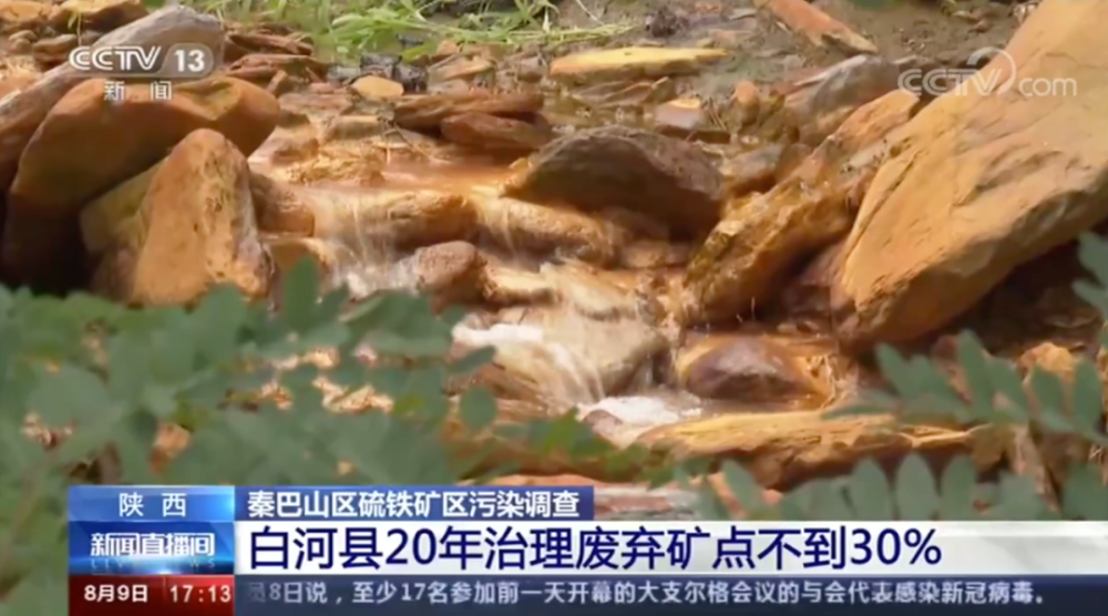 陕西省安康市白河县2000年起停止硫铁矿开采,但因尚未进行生态修复或风险管控等措施,矿洞和山区深沟露天堆放的矿渣在雨水和泉溪的冲刷下仍源源不断的向下游输送“磺水”,威胁汉江流域水质。
