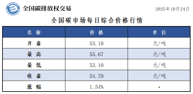 【CEA】全国碳市场每日综合价格行情及成交信息20251024