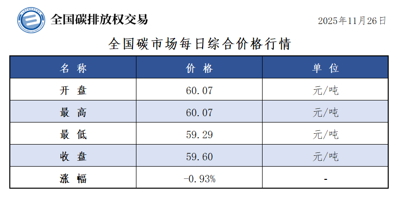 【CEA】全国碳市场每日综合价格行情及成交信息20251126