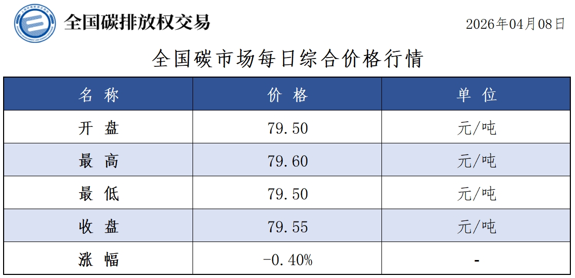 【CEA】全国碳市场每日综合价格行情及成交信息20260408